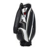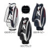 ベーシックシリーズのカートキャディバッグ。軽量シボ合皮を使用し、持ち運び時の負担を軽減。前回ベーシックモデルから改良を加え、上端とシューズポケットを新たに追加。ロゴは刺繍で表現し、ポイントにエナメル生地を使用することで上質感をプラス。機能性とデザイン性を兼ね備えたモデル。中国製
