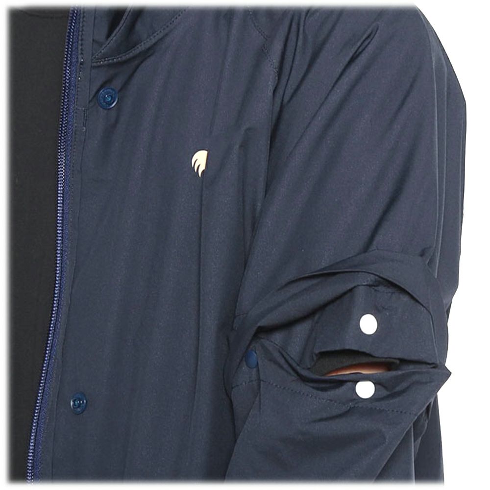 【生地】軽やかでシワになりにくいポリエステル100%の生地を使用しています。通気性が良く快適な着心地を提供します。【デザイン】背面の大きなグラフィックのプリントが目を惹く長袖ポロシャツ。全体の配色に統一感を持たせ、前開きの部分をスナップボタンにしたことで着脱しやすく、また、スポーティーな印象を与えます。シルエットは程よくゆったりとしたリラックスサイズを採用。襟裏にもバニーの刺しゅうを入れたことで、セーターやアウターを重ね着してもおしゃれなワンポイントになります。中国製。