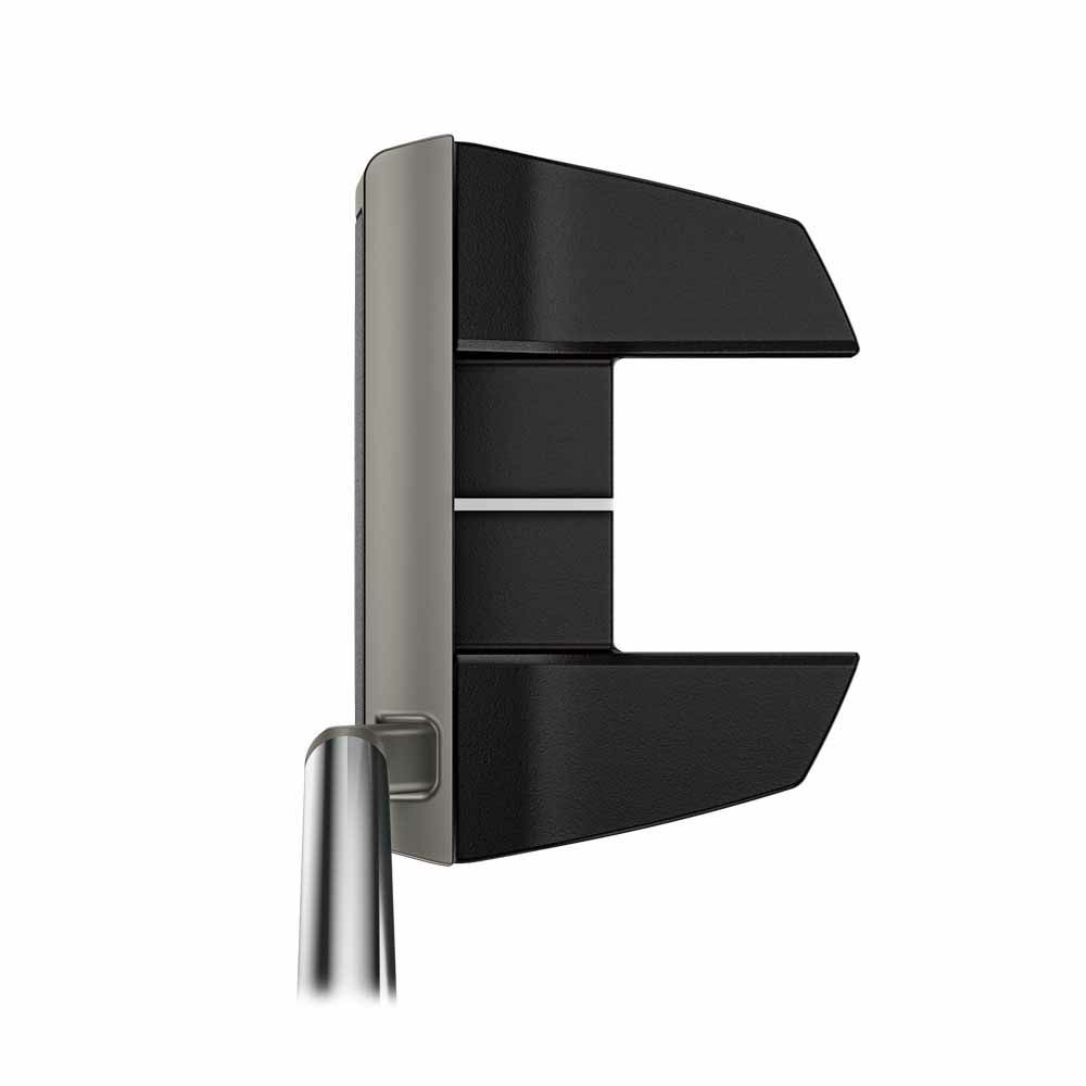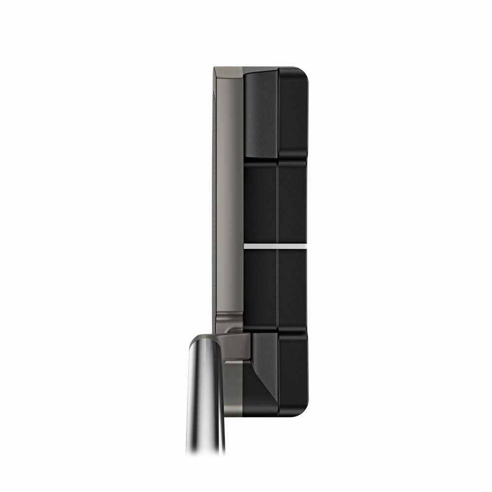 ツノ型のヘッドは高い安定性を実現し、ショートスラントネックでフェースの開閉を感じやすくさせる。ツートンデザインにより、シルバーのアライメントラインとマットブラックのヘッドが際立ちアライメント効果が抜群