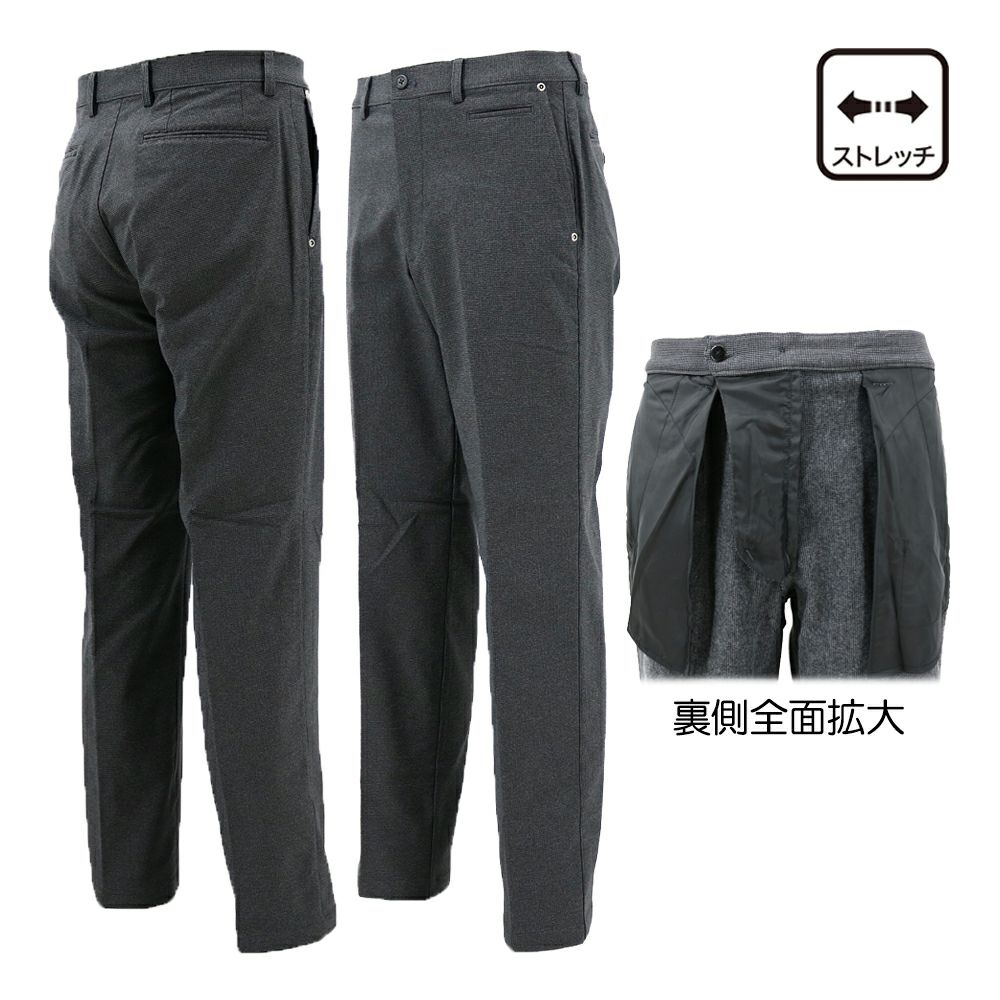 「暖・楽」暖か裏シャギーフリース楽らく後ろゴムパンツ。機能:撥水加工、縦横ストレッチ素材。中国製。